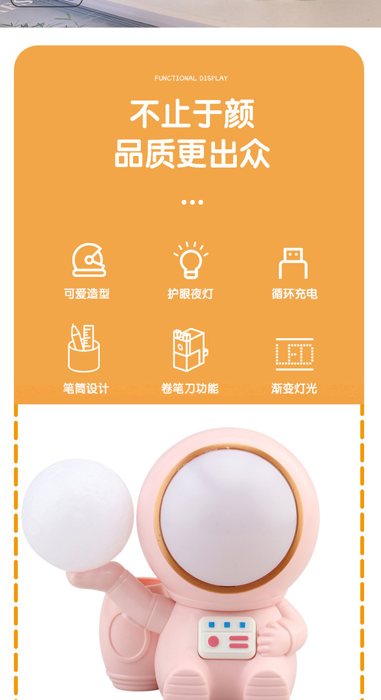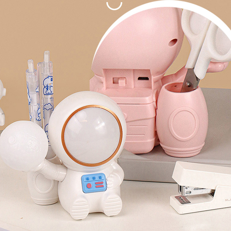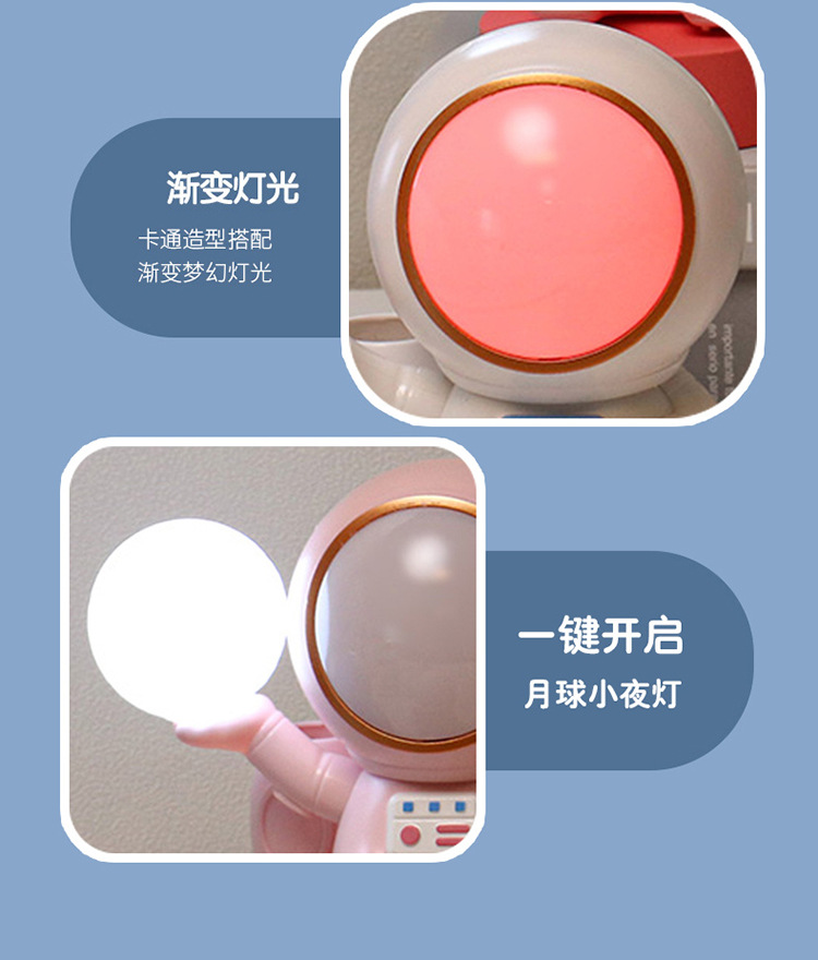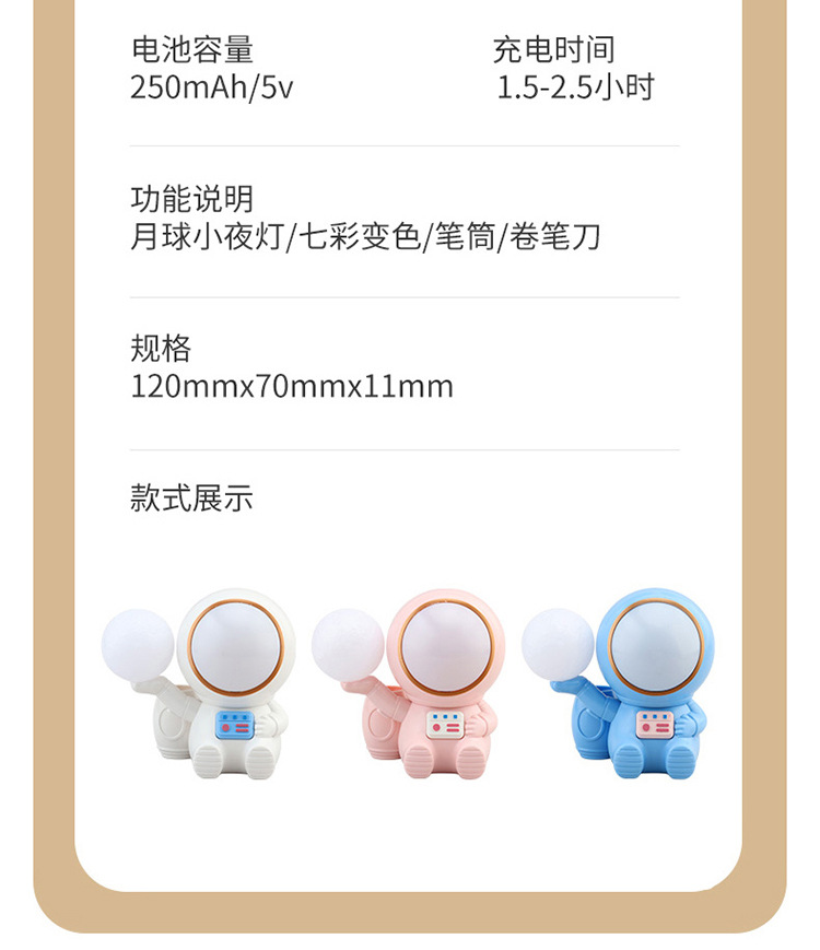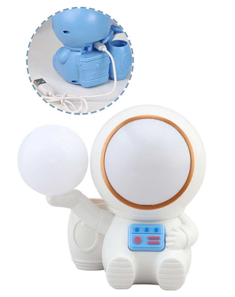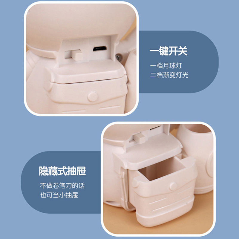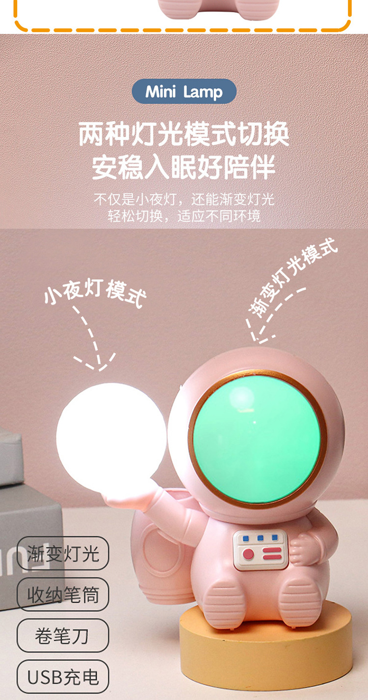 高颜值宇航员桌面迷你渐变彩灯桌面充电台灯卷笔刀收纳笔筒可爱灯