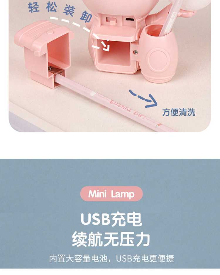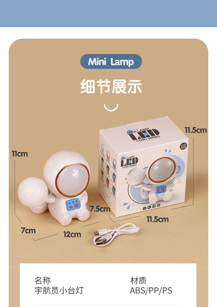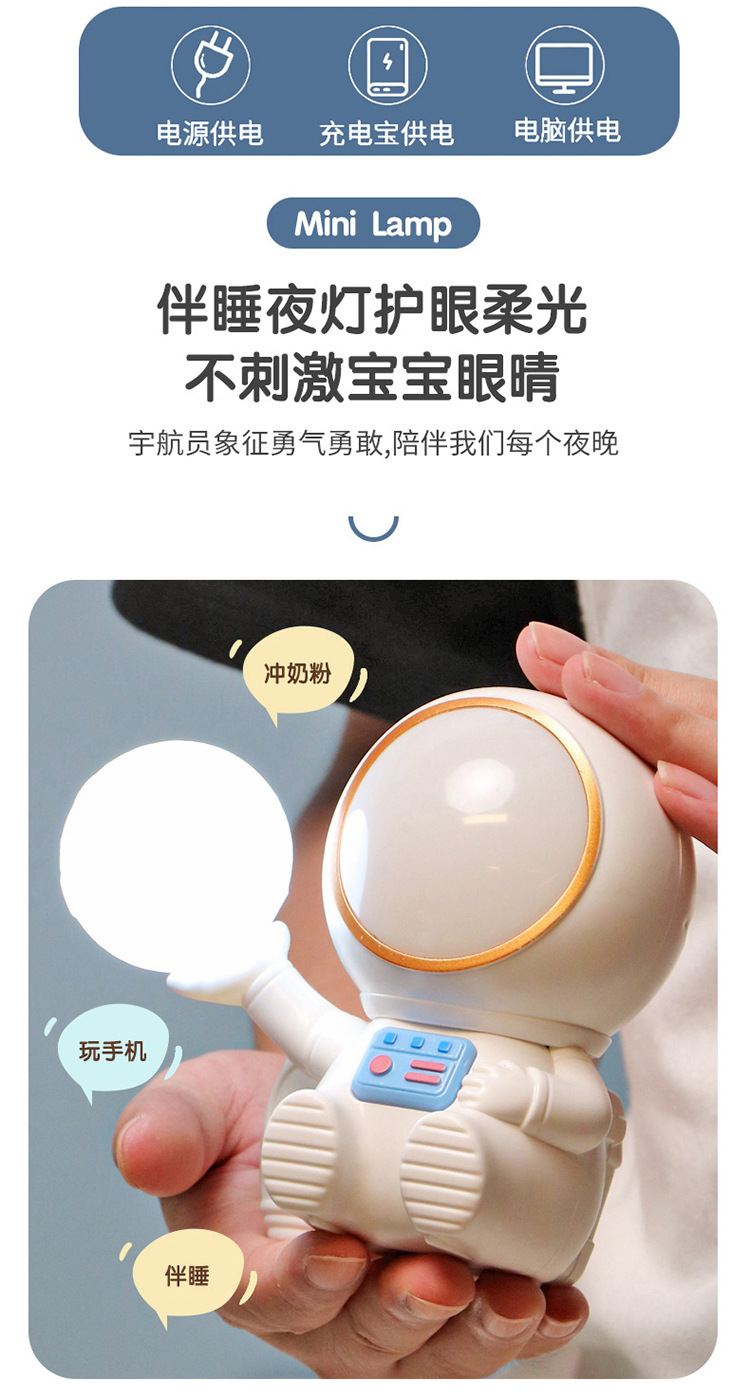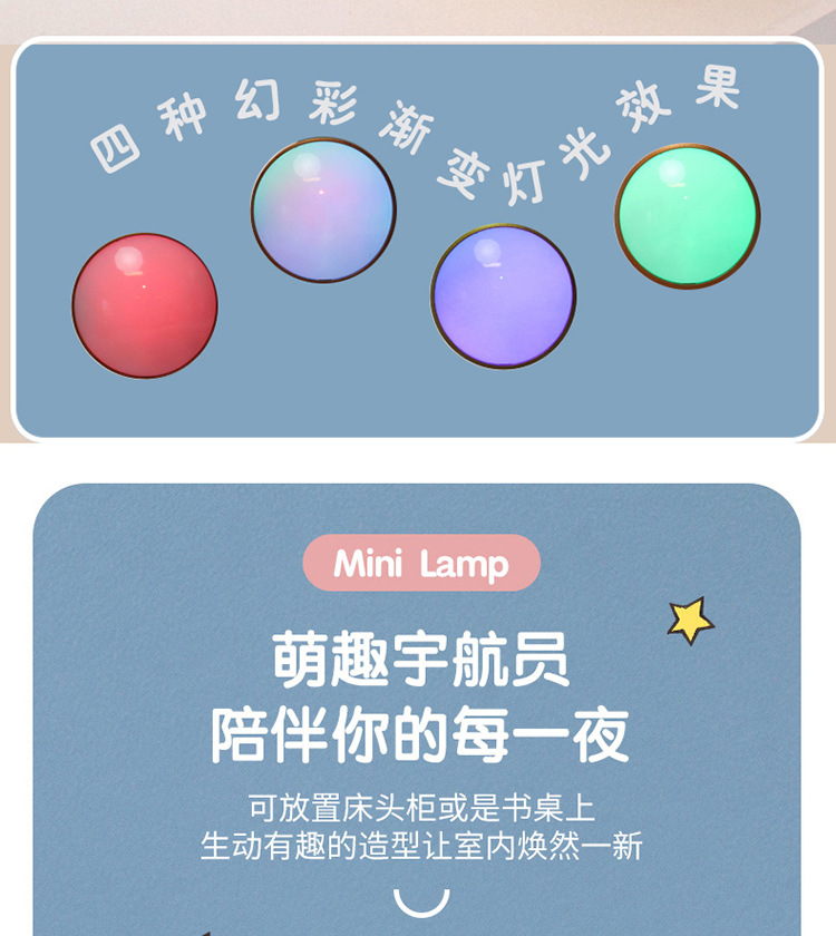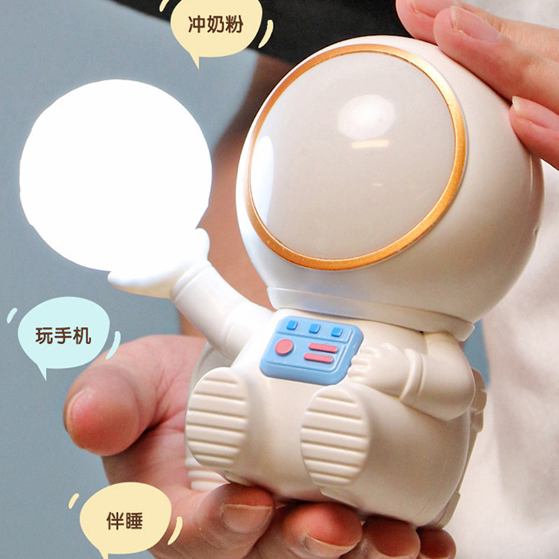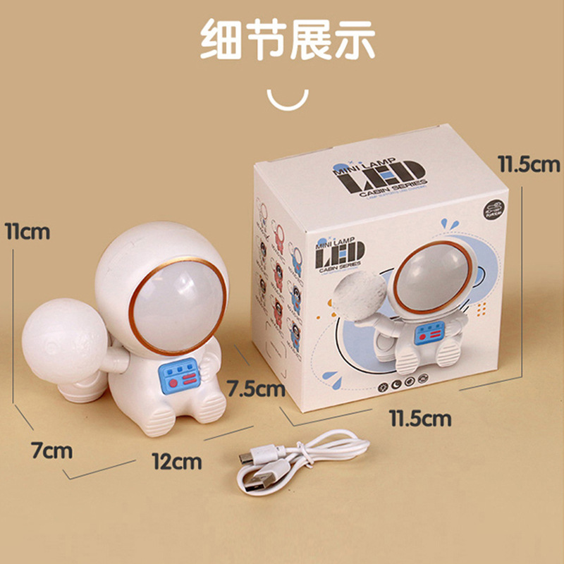 高颜值宇航员桌面迷你渐变彩灯桌面充电台灯卷笔刀收纳笔筒可爱灯