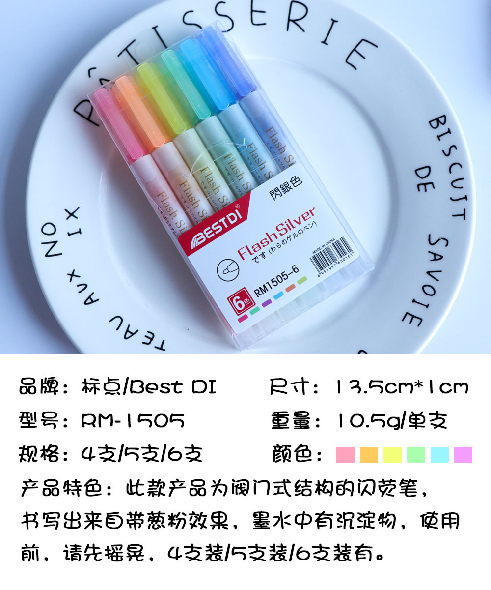 标点RM-1505新款阀门式荧光笔 4支5支6支套装 学生用标记笔手账笔