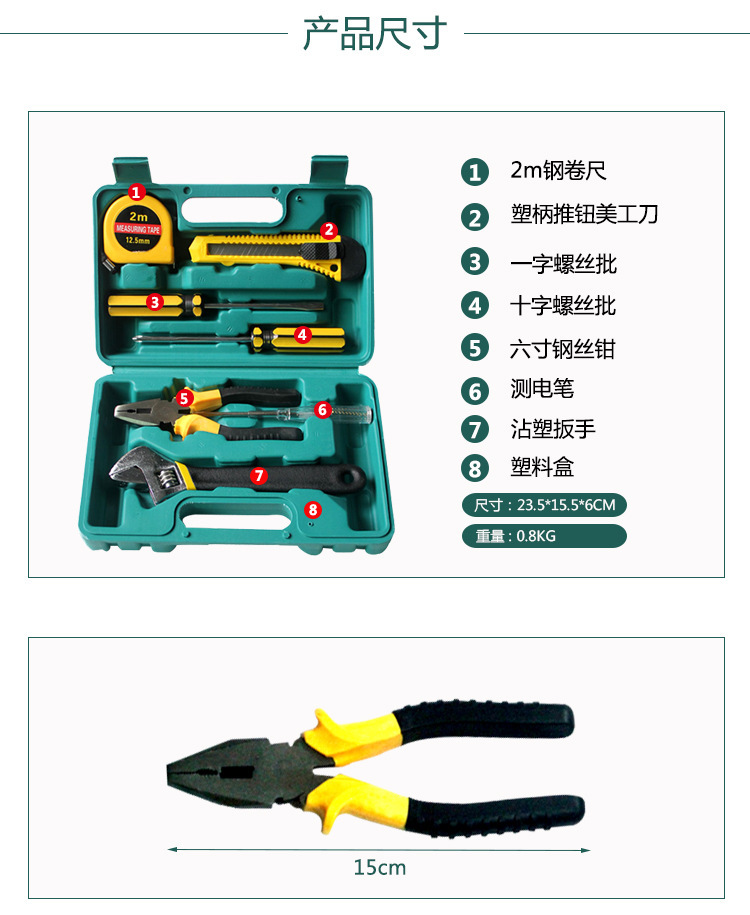 深掘工具箱套装五金工具套装8008手提式组合工具带扳手礼品工具套
