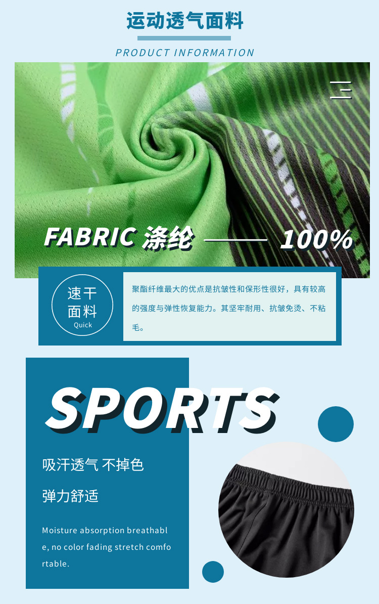 男绿色上衣+白边短裤,男宝蓝色上衣+黄边短裤,女绿色上衣+白边短裤,女宝蓝色上衣+黄边短裤