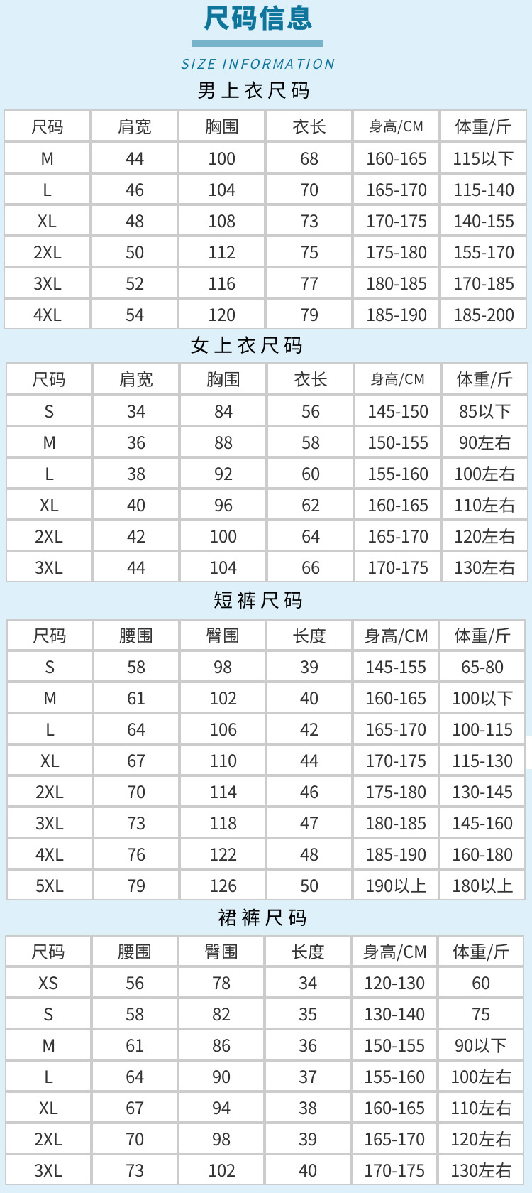 S,M,L,XL,XXL,XXXL,4XL