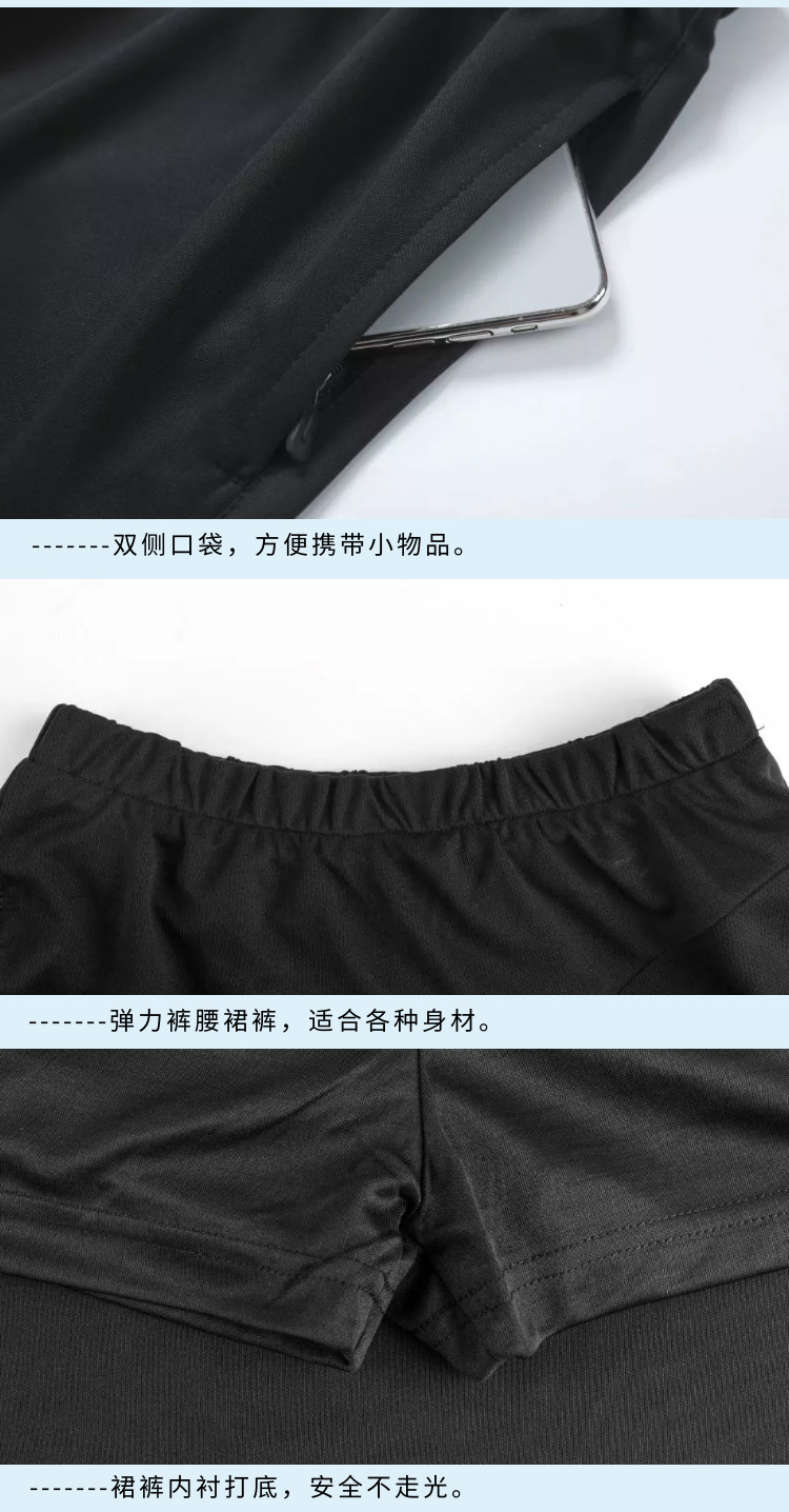 女黑色上衣+白边短裤或换裙裤