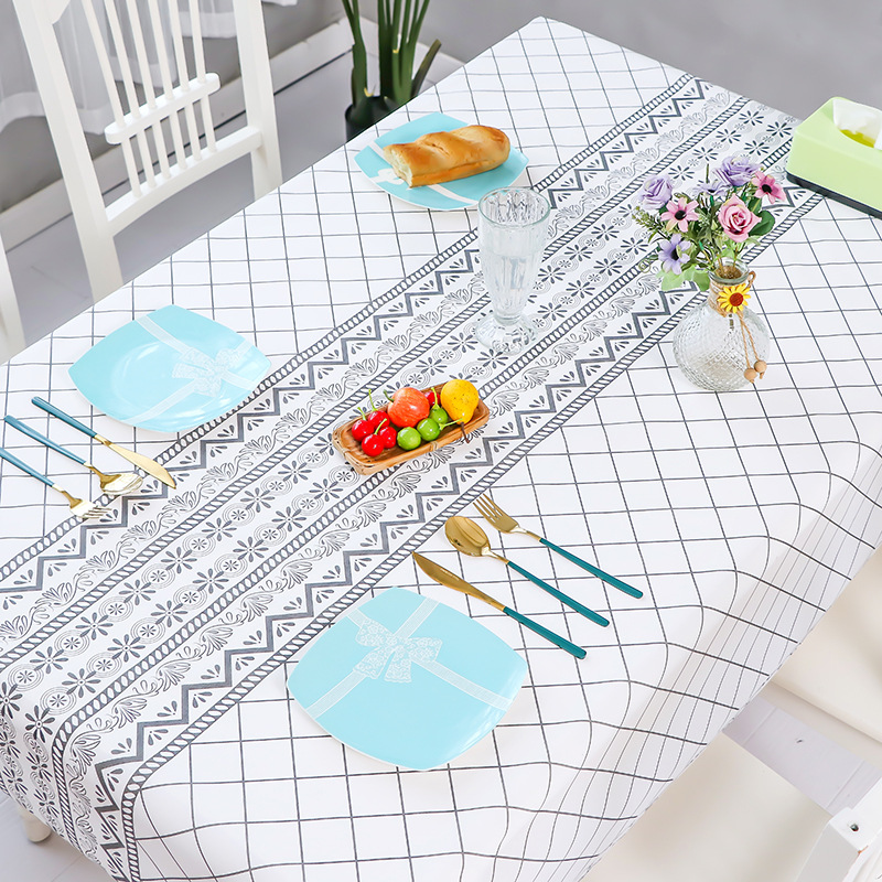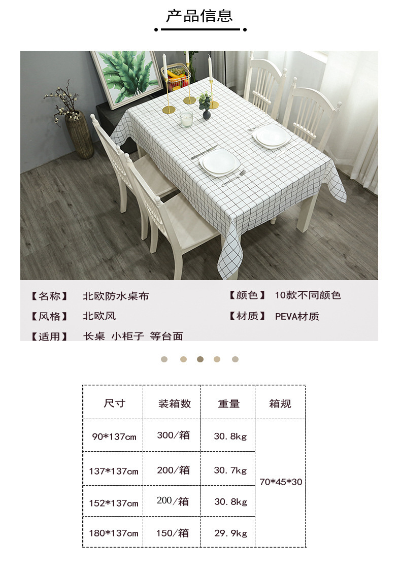 居家pe桌布北欧风茶几垫防油防水免洗桌垫PVEA格子桌布 茶几桌垫