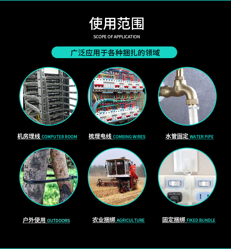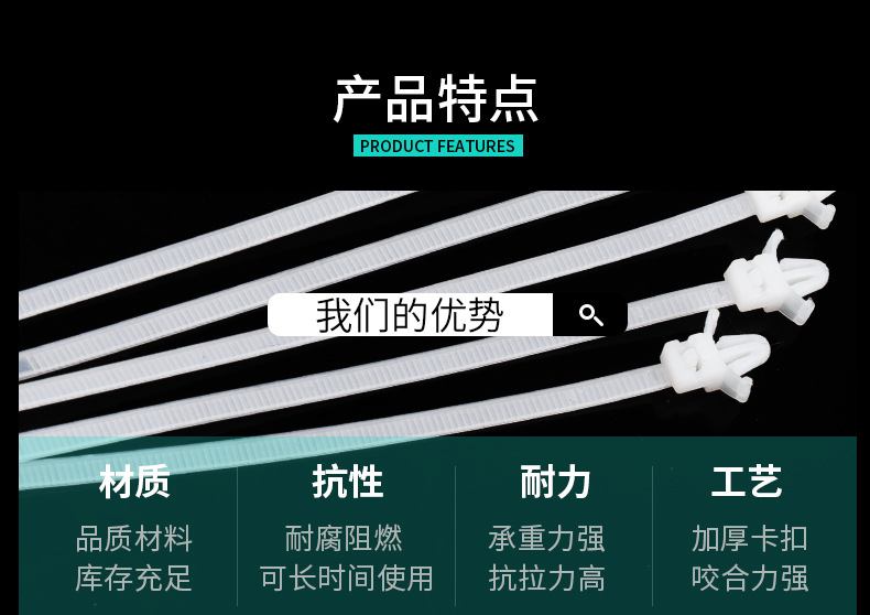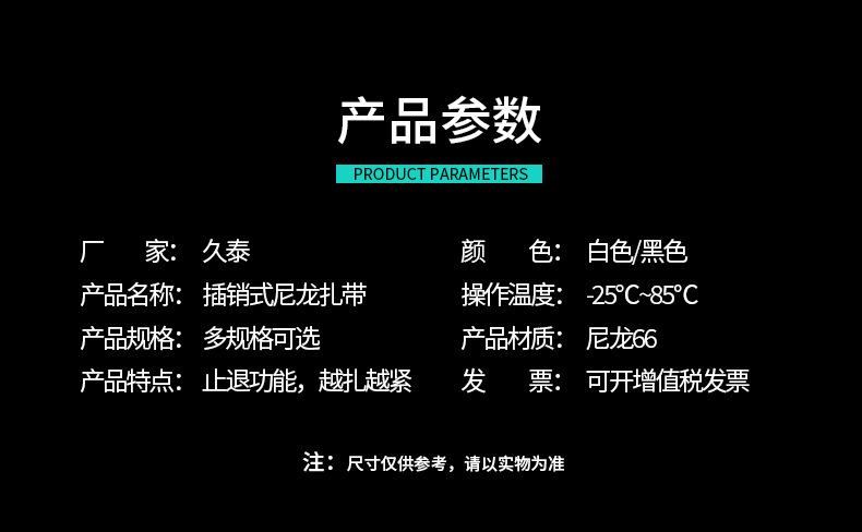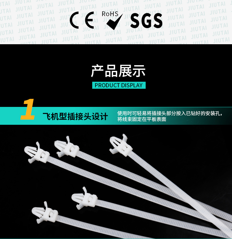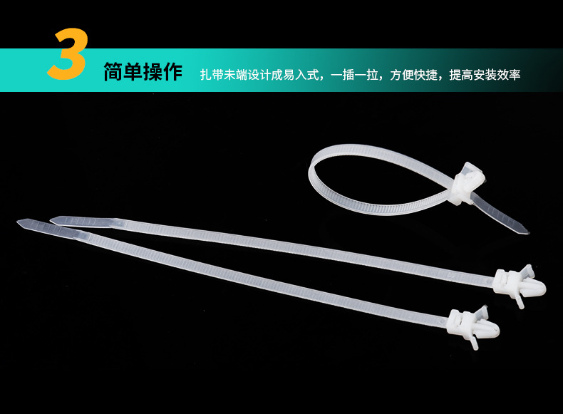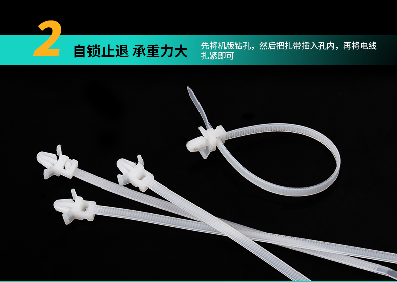 3*130mm螺纹头汽车扎带 杉树头扎线带 插销式圆盘自锁捆扎带