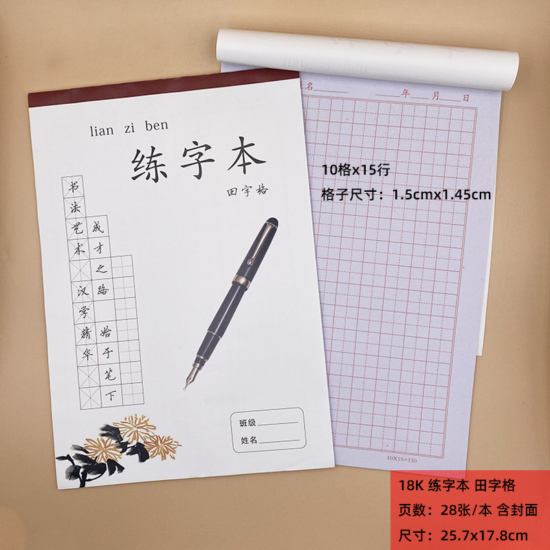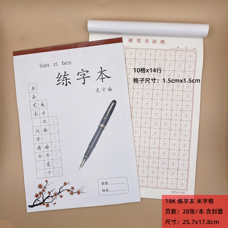 18K练字本(米格),18K练字本(田格),18K练字本-牛皮(米格),18K牛卡-练字本(米格),16K牛皮车线-练字本(米格),16K牛皮车线-田字本,16K牛皮车线-硬笔书法(米格)