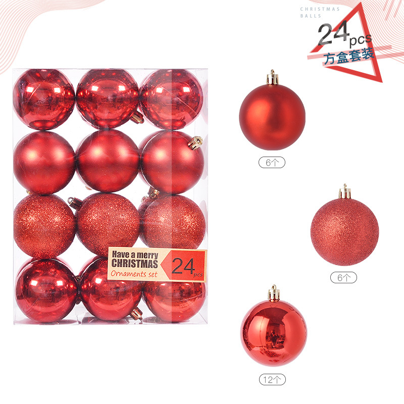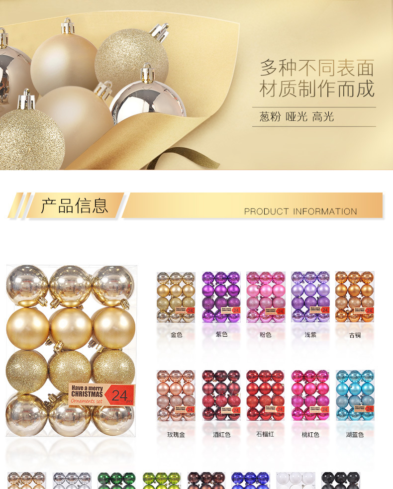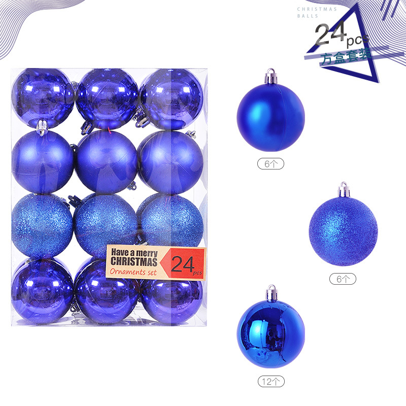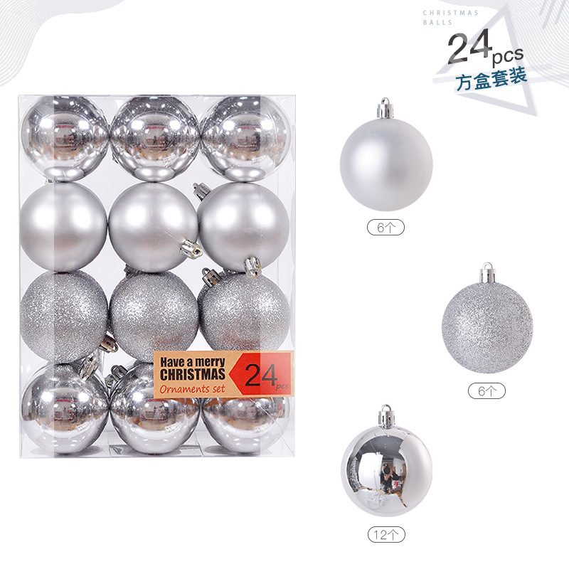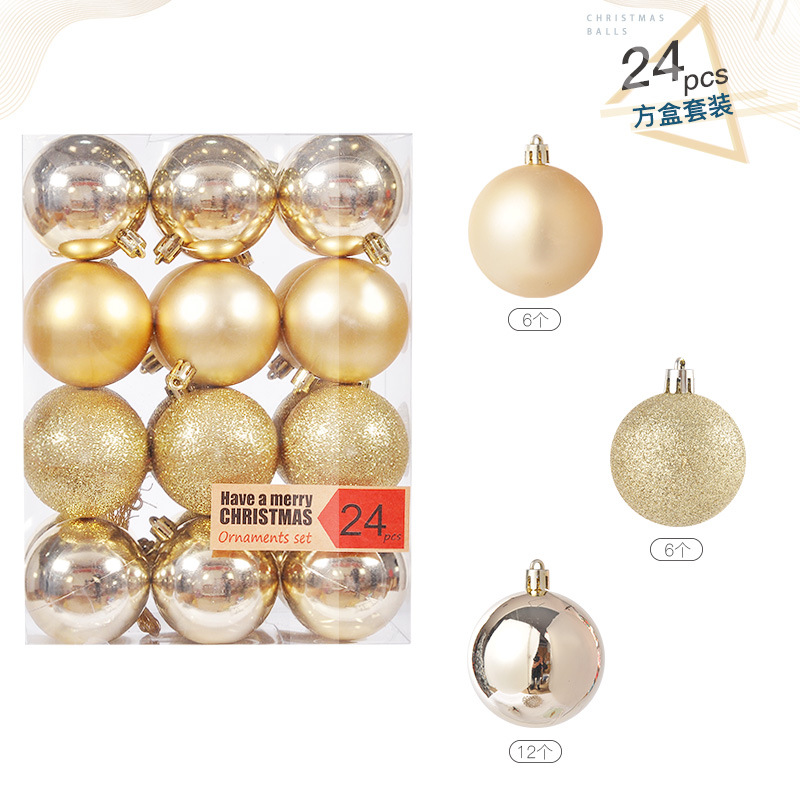 圣诞树装饰品圣诞球24挂饰圣诞塑料球电镀装饰吊饰套装球