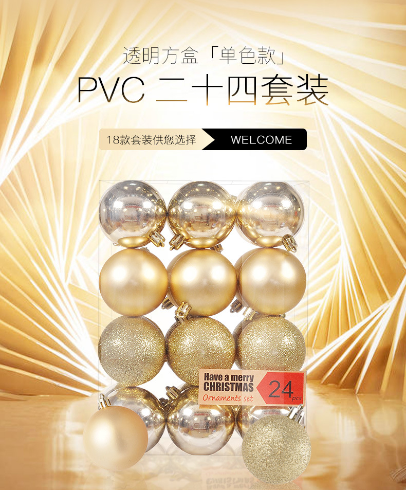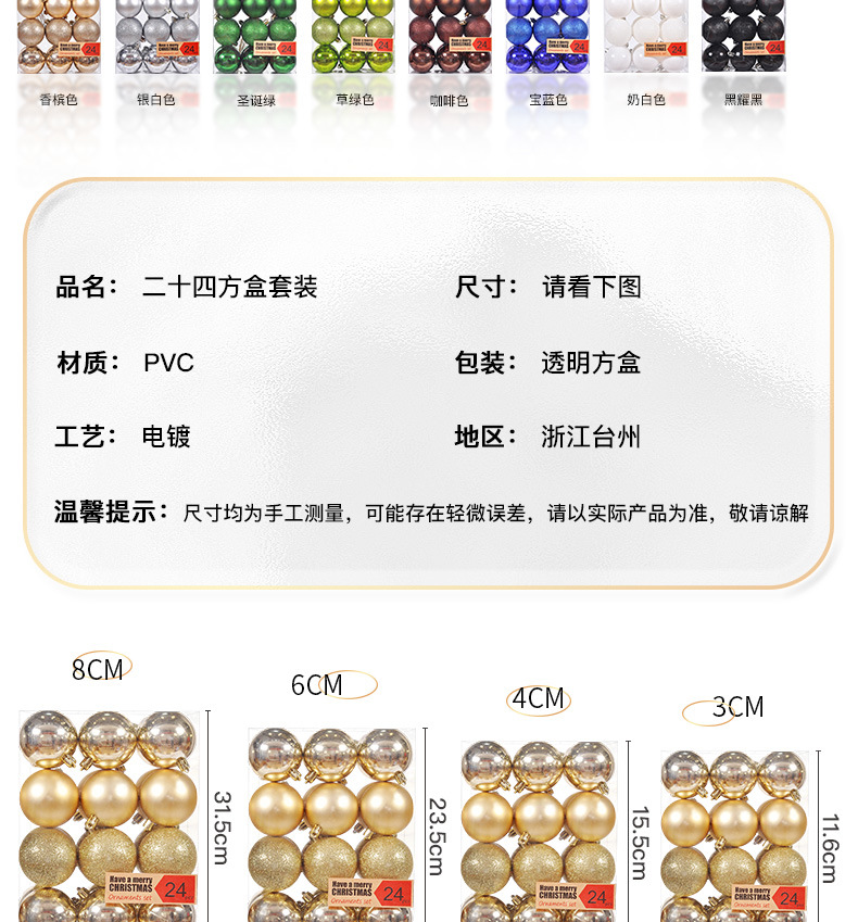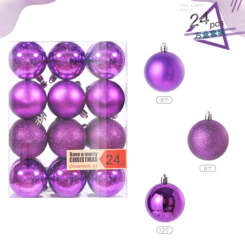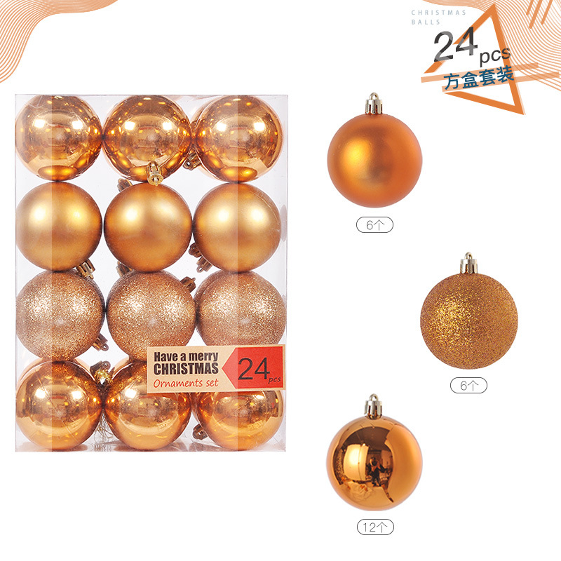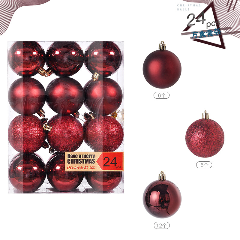 圣诞树装饰品圣诞球24挂饰圣诞塑料球电镀装饰吊饰套装球