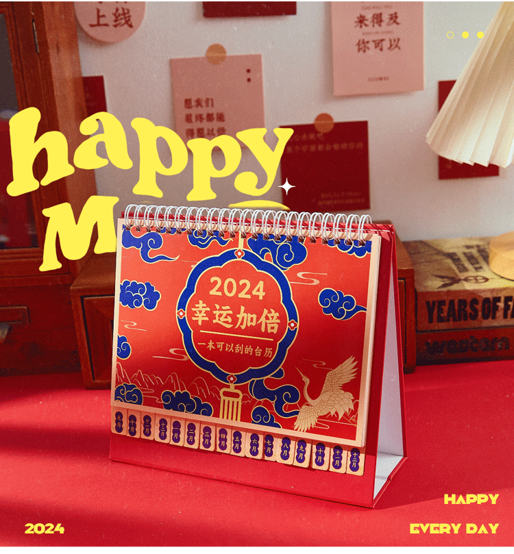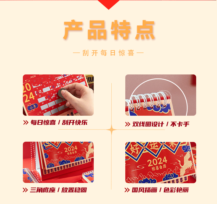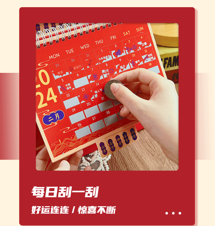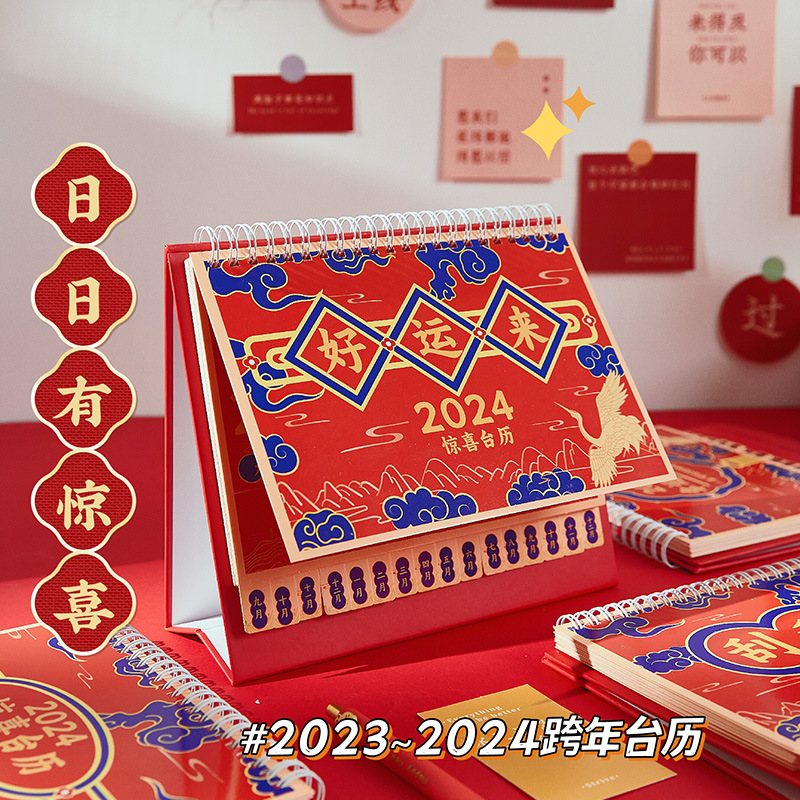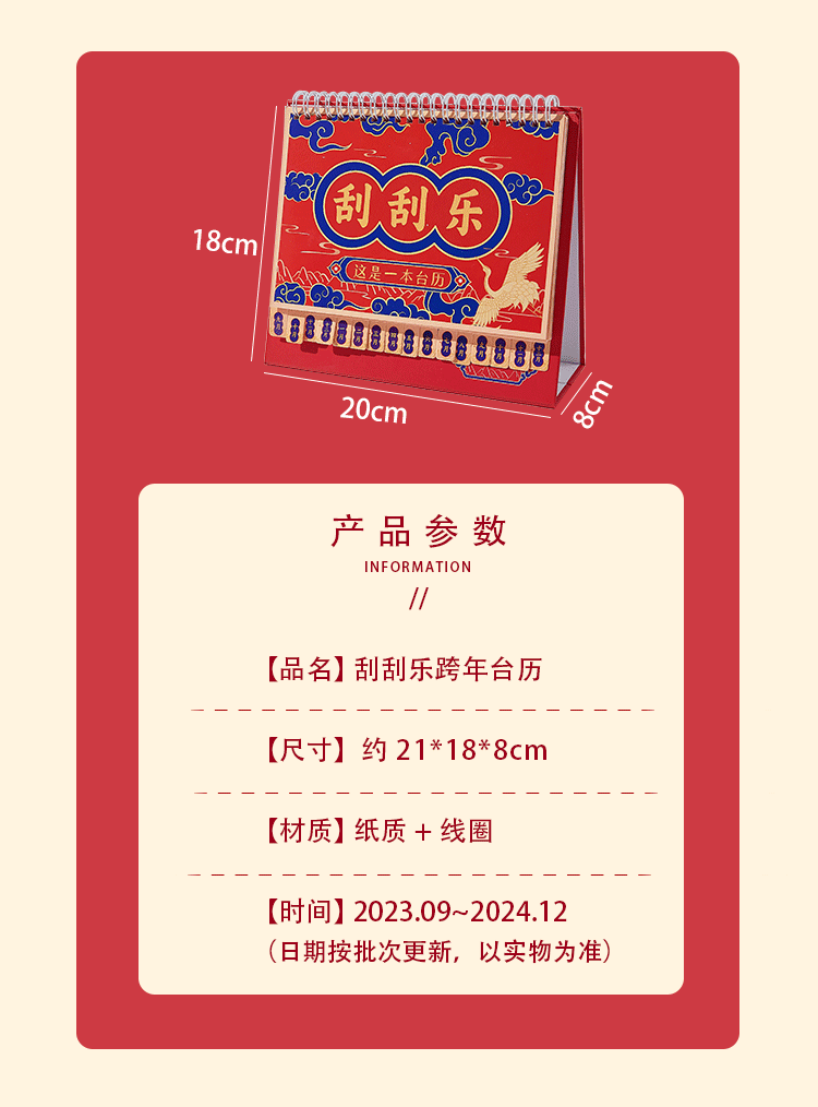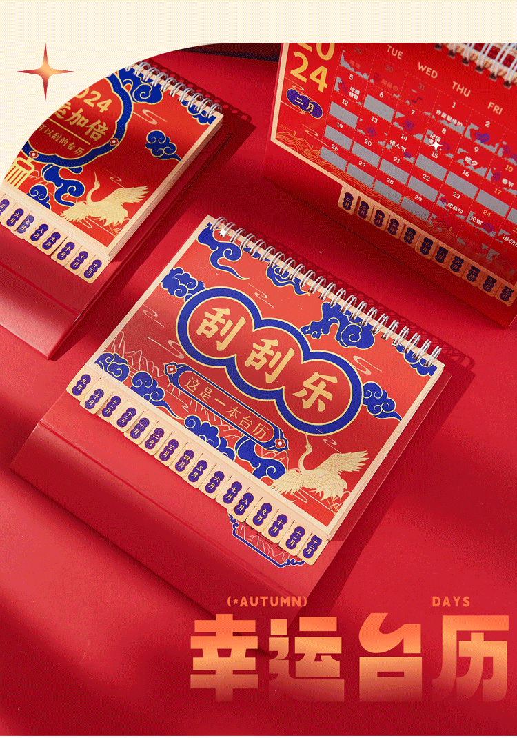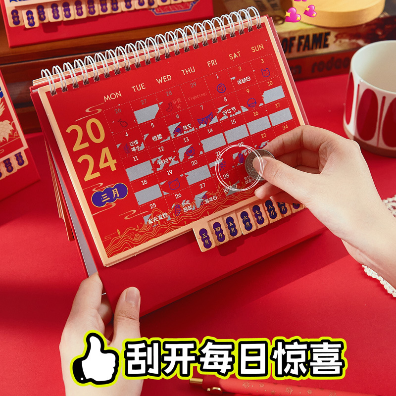 新年逢刮刮乐台历 2024年中国风日历新年复古趣味桌面小
