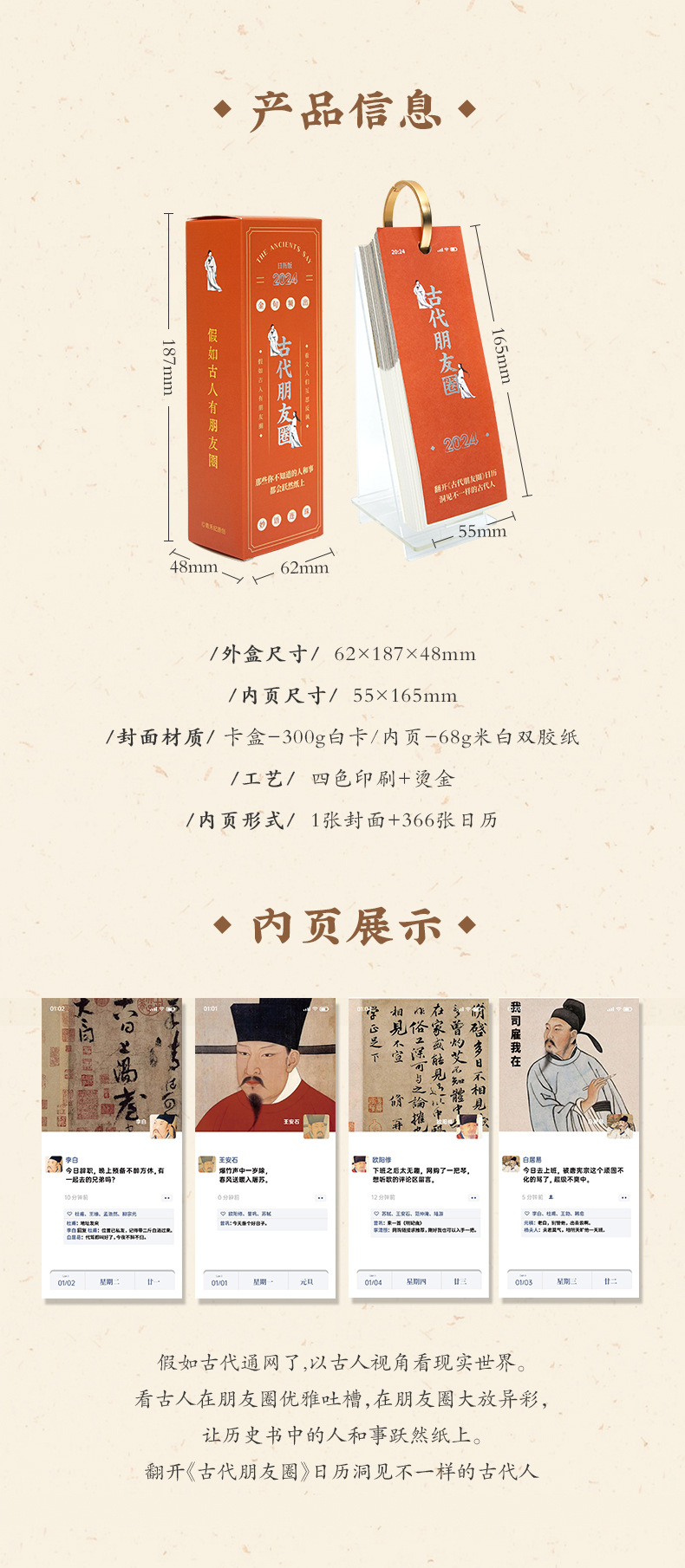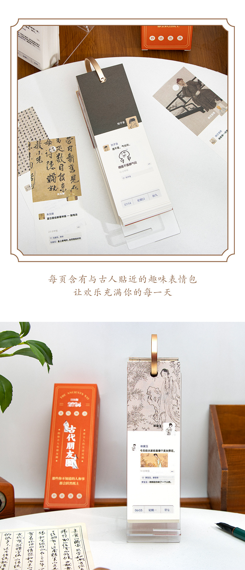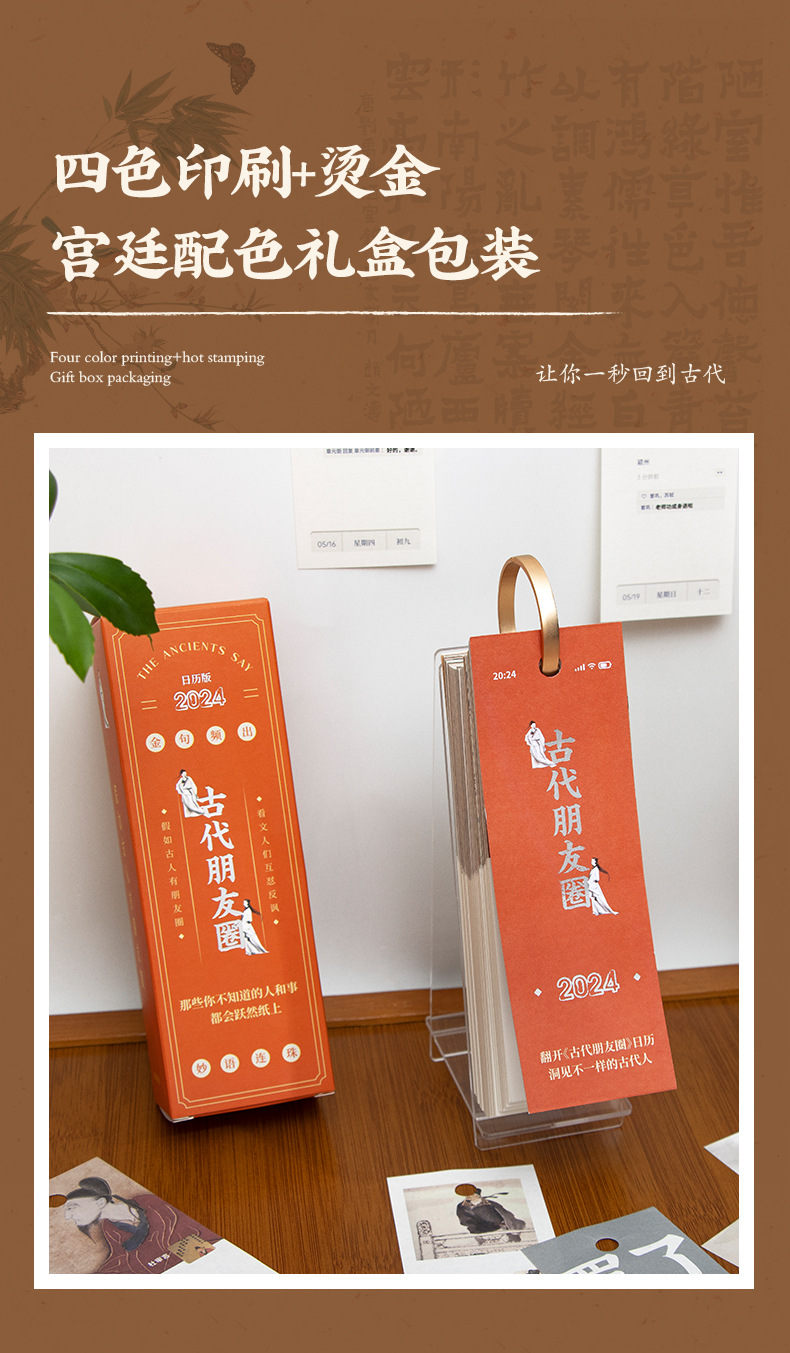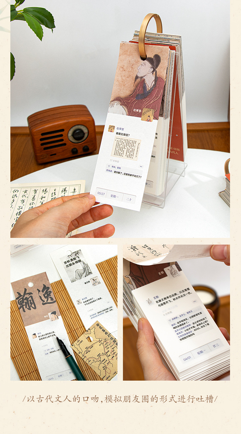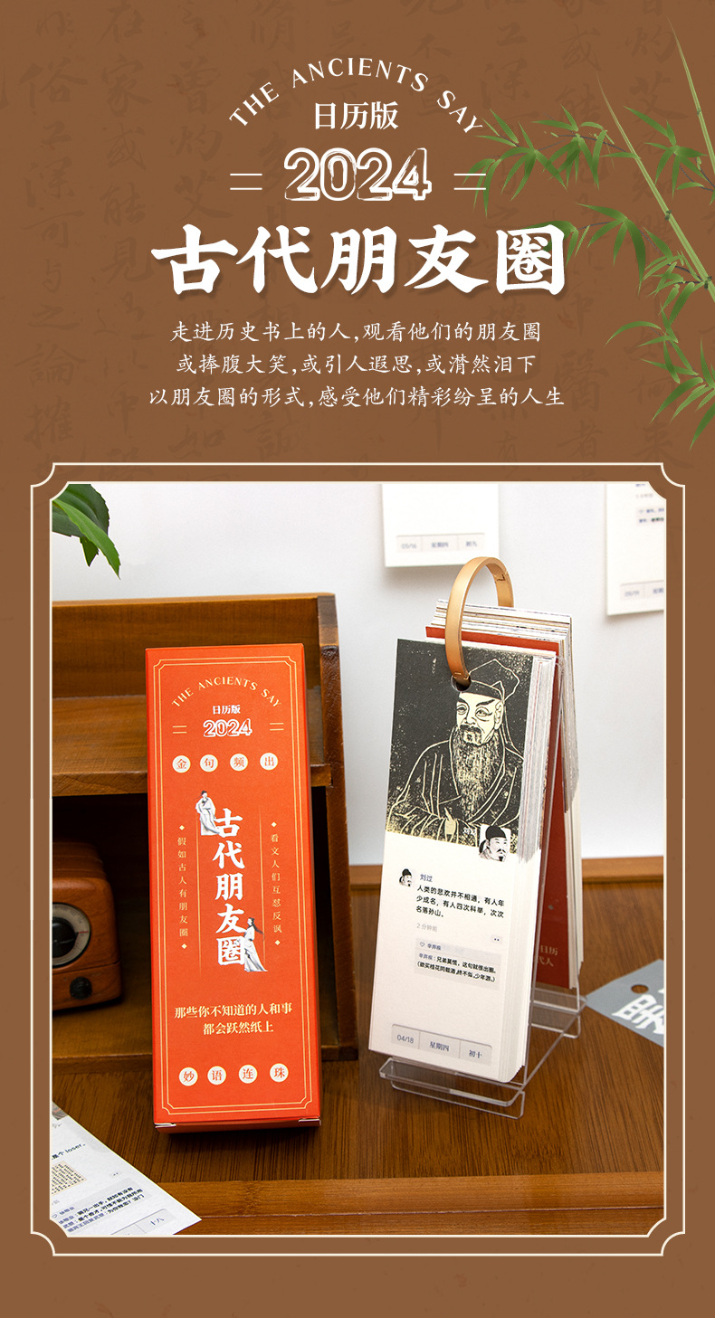 2024年古代名人朋友圈台历吐槽创意古风趣味办公室桌面摆件日历