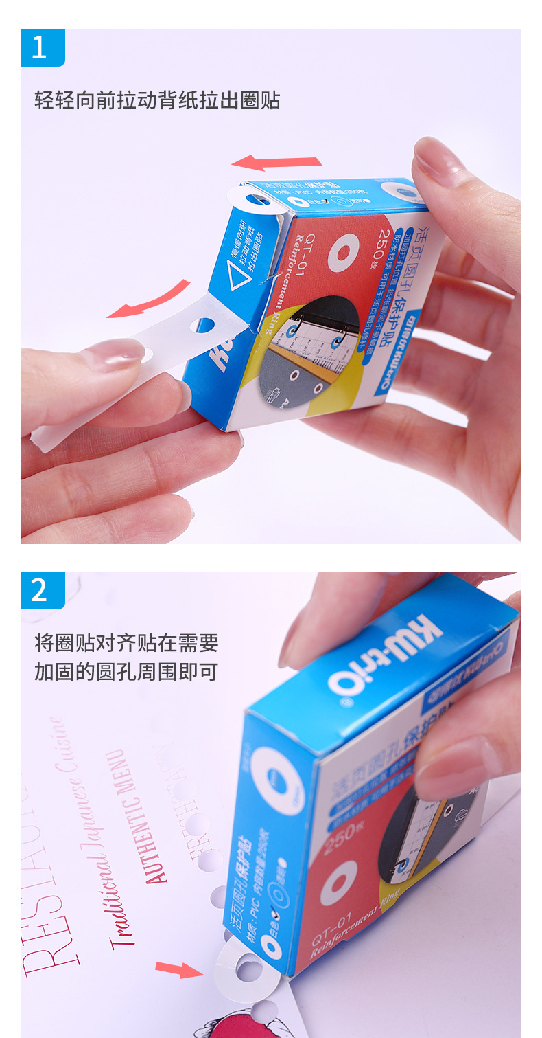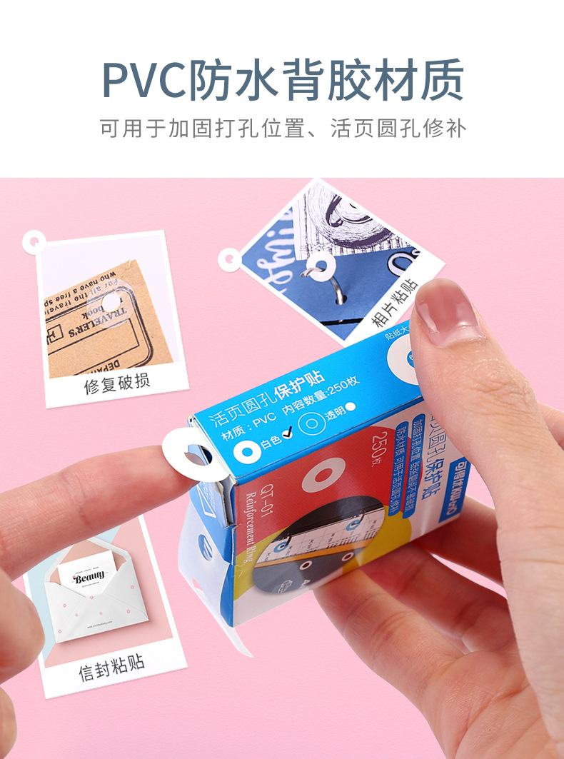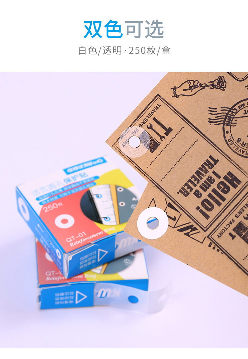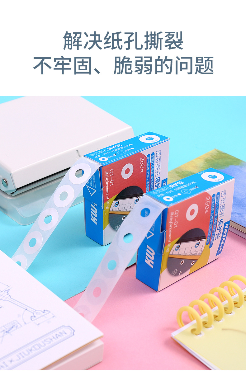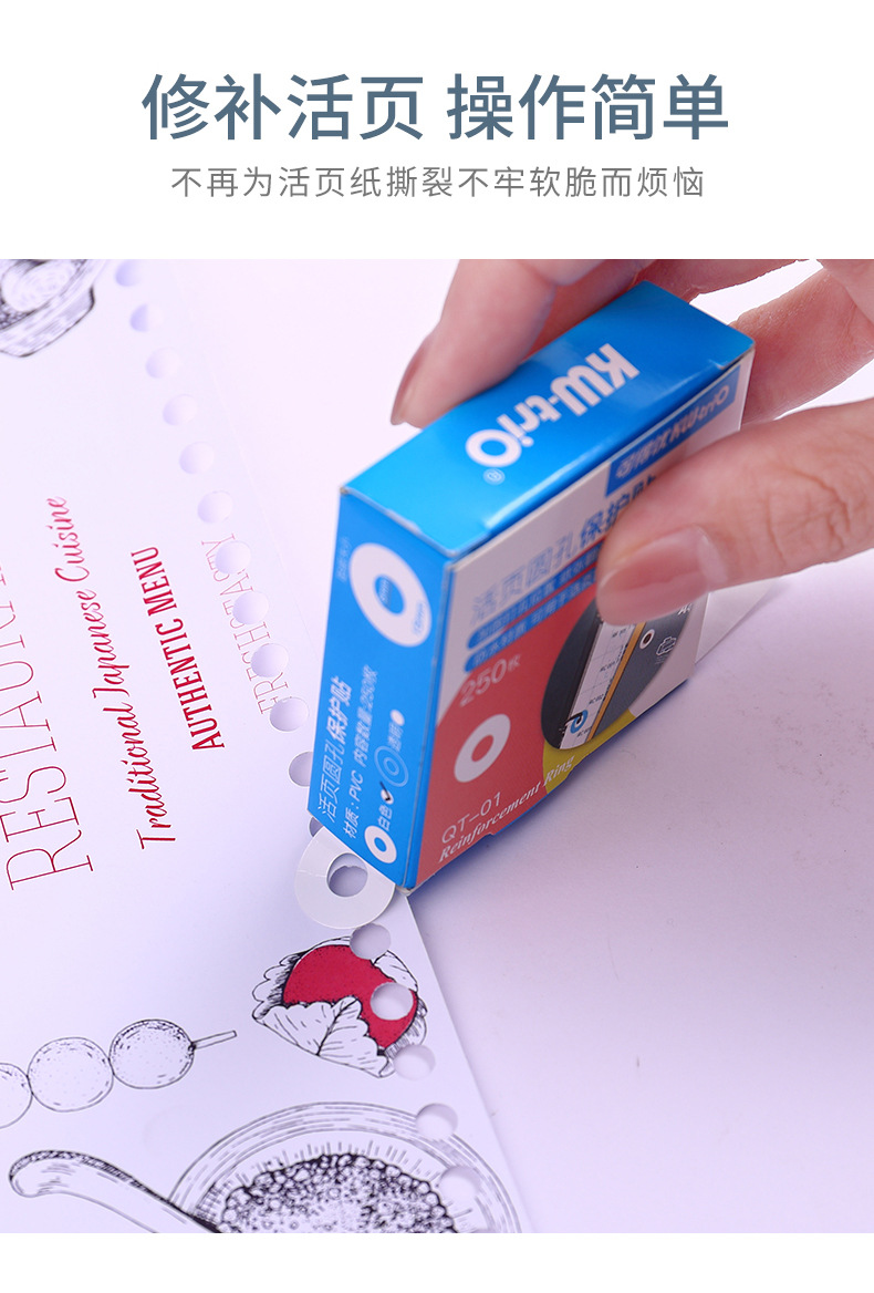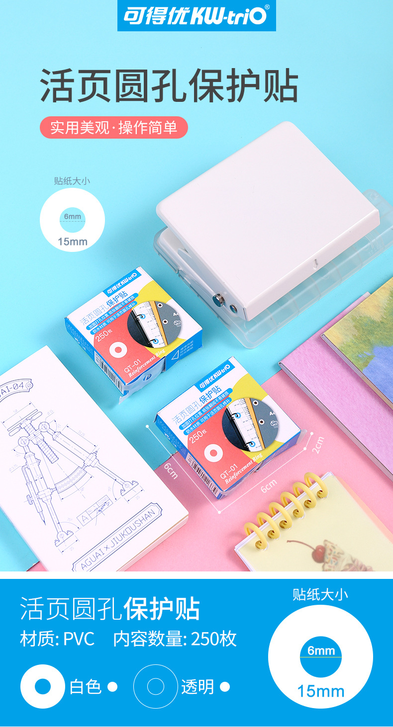 可得优kw-trio QT-01打孔补强贴纸 打孔保护贴修复贴纸250枚/盒