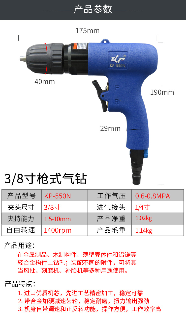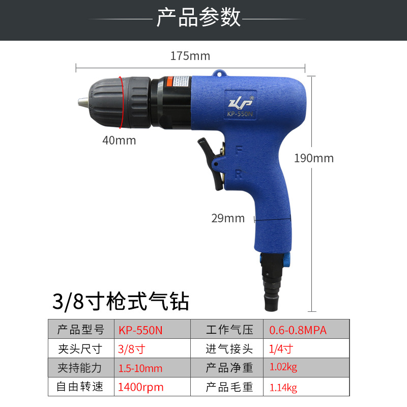 10mm气动枪式气钻自锁头风钻3/8气动钻孔风动钻手枪钻