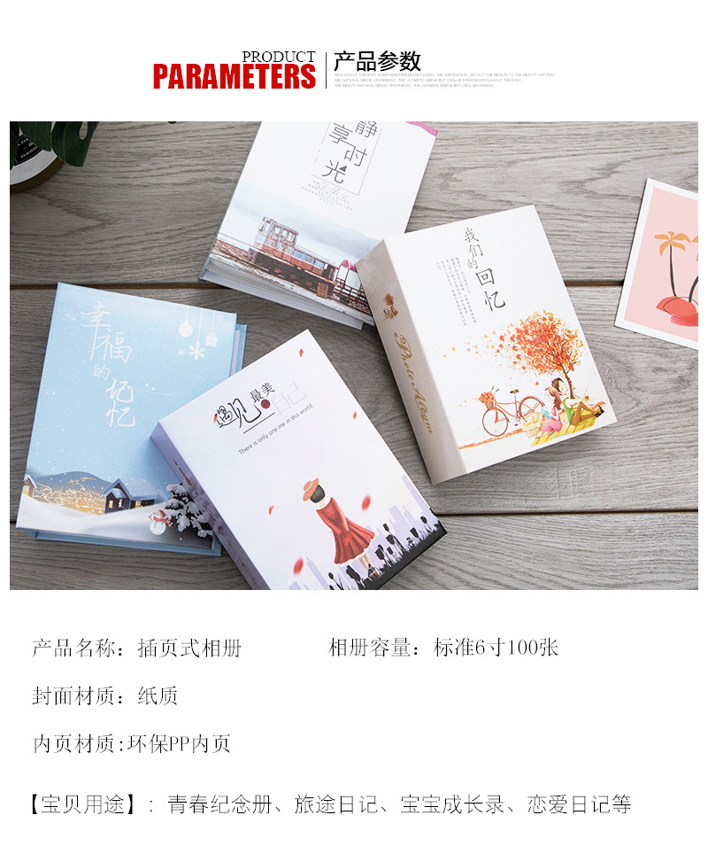 6寸100张 简易4R相册 插页 插袋 儿童 宝宝 相册批发代发