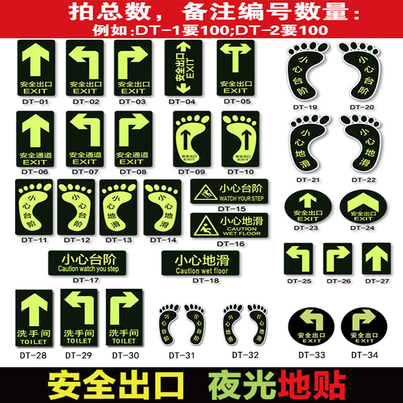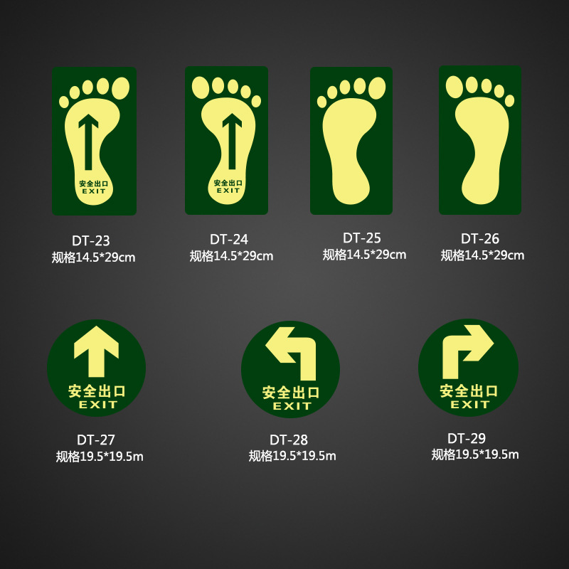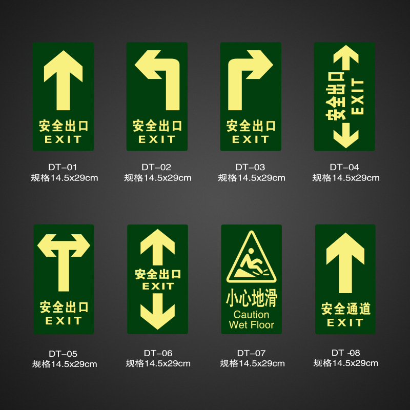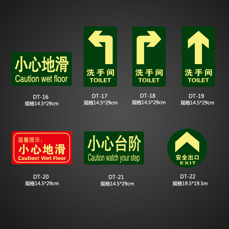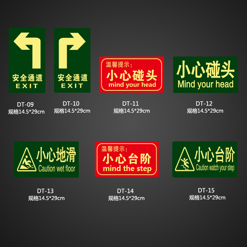 小心地滑 夜光安全指示牌 紧急标识牌 安全通道消防地贴