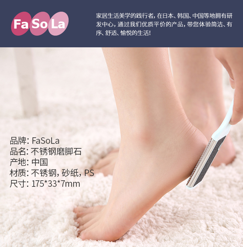 FaSoLa不锈钢磨脚石创意双面去除老茧去死皮修脚器男女浴室搓脚板