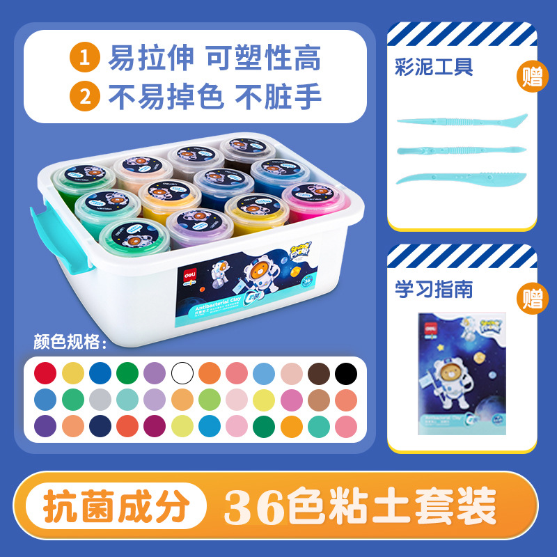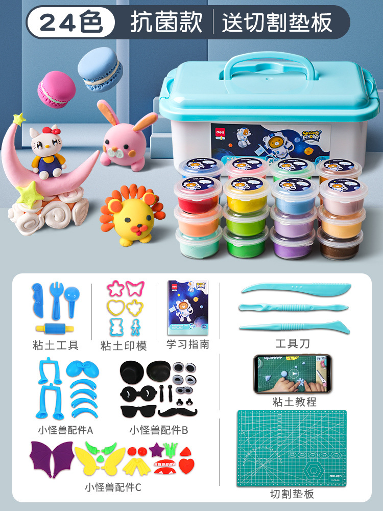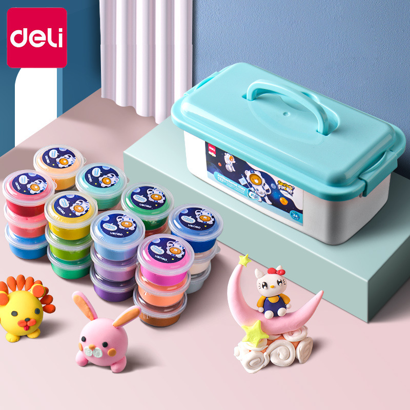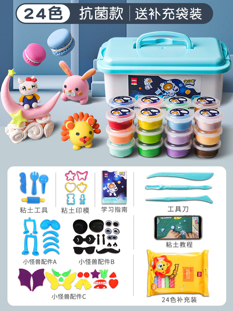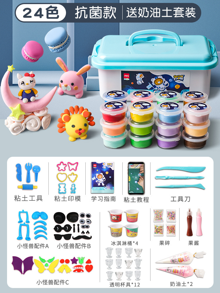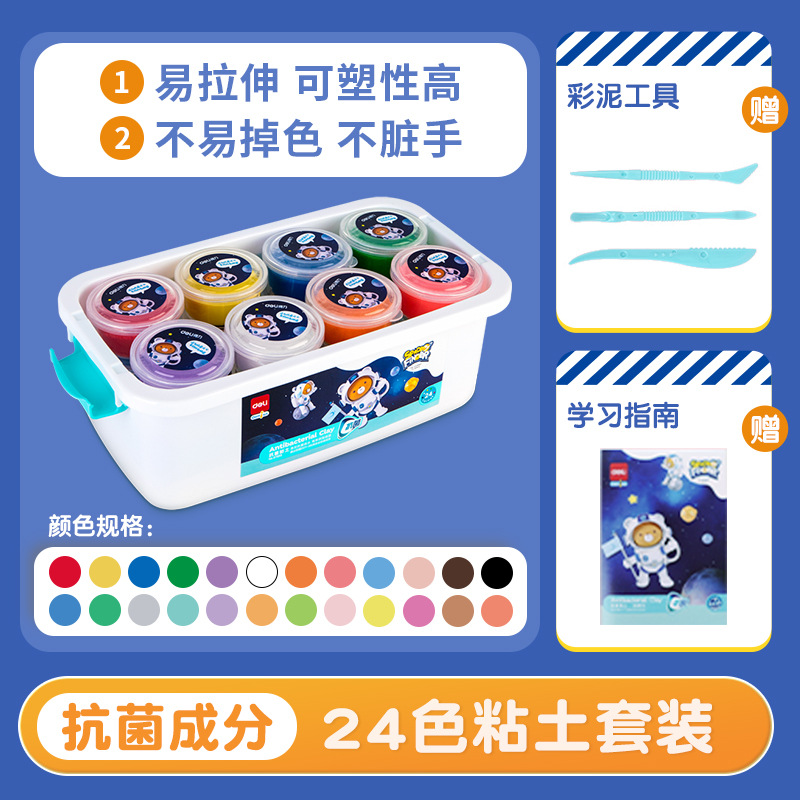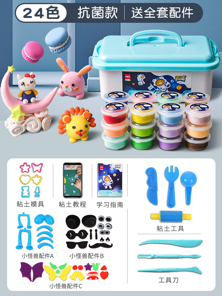 得力67853超轻粘土24色橡皮泥食品级轻黏土儿童彩泥玩具套装